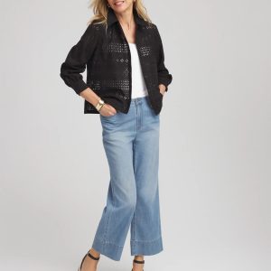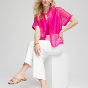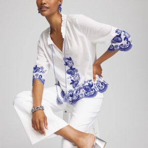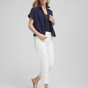 Embroidered Eyelet Button-down Top