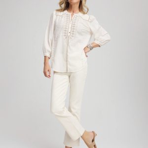 Embroidered Eyelet Collared Shirt