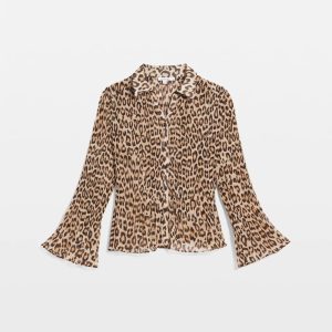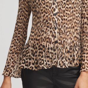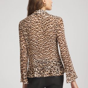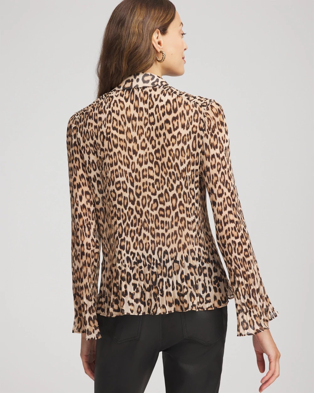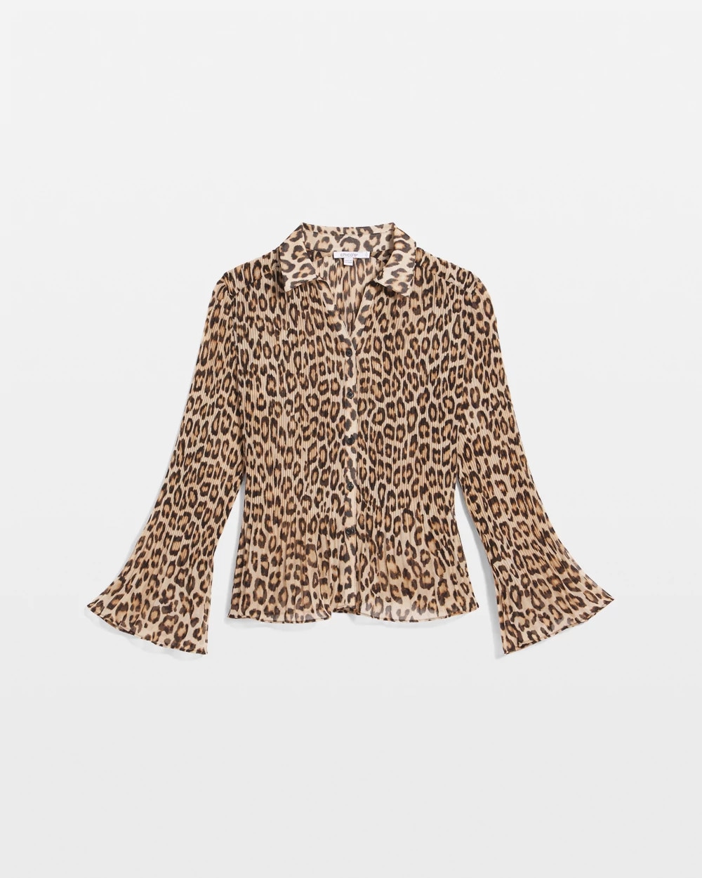 An all-over soft pleat and a subtle flared cuff help define this Animal-Print Pleated Georgette Blouse. Cut from lightweight georgette, featuring a button-front placket and split neckline. Pair this bold style with jeans or cropped pants to strike a casual balance, Emme, Brigitte, or Juliet pants for a more upscale style.