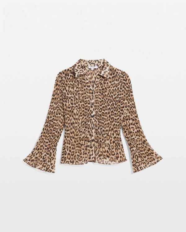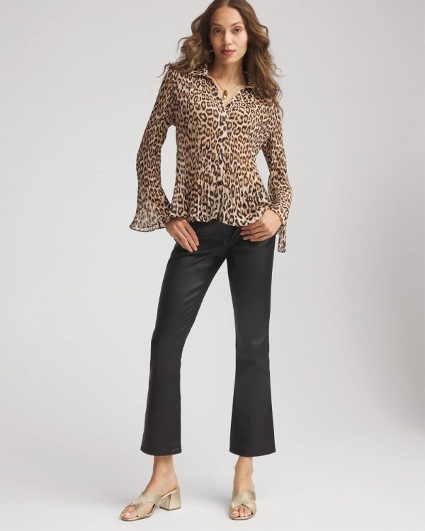 An all-over soft pleat and a subtle flared cuff help define this Animal-Print Pleated Georgette Blouse. Cut from lightweight georgette, featuring a button-front placket and split neckline. Pair this bold style with jeans or cropped pants to strike a casual balance, Emme, Brigitte, or Juliet pants for a more upscale style.