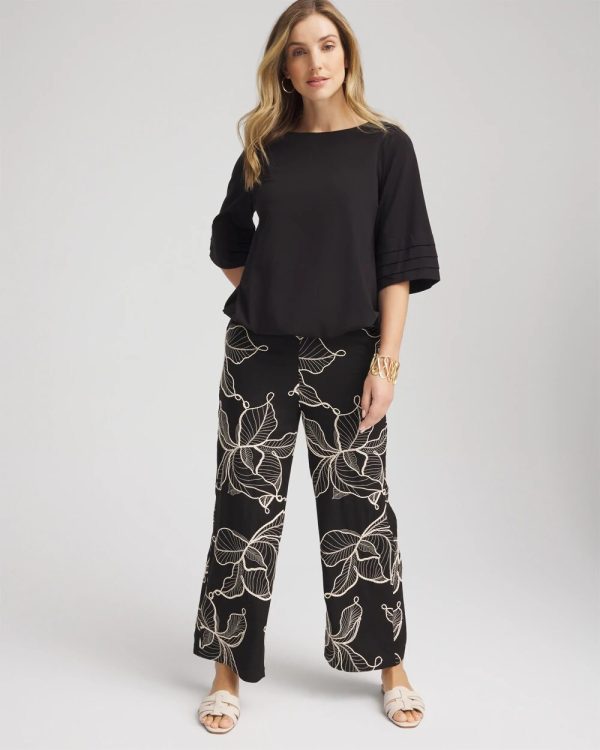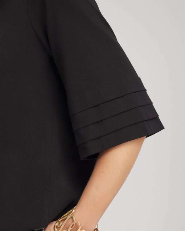 A luxurious alternative to a casual cotton top. Crafted of a cotton-blend fabrication, Chico’s bubble-hem top has tiered pleating details that elevate the—meticulously designed for feminine flare—bell sleeves. Showcasing a refined relaxed, lined body with unlined sleeves.