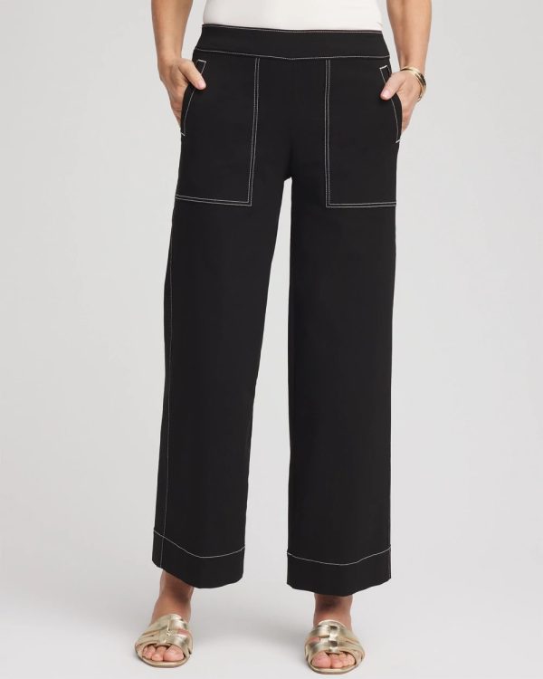 The Brigitte™ Utility Wide-Leg Cropped Pants are made with Chico’s exclusive So Slimming® 180 built-in shapewear front tummy panel. The ultimate in tummy slimming with angled front pockets to enhance the effect. They feature the classic Brigitte™ fit from waist-to-hip, plus contrast stitch detailing, utility pockets, and a wider leg from thigh-to-hem for added style and comfort. Now available in petite.