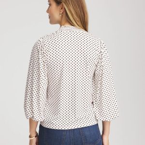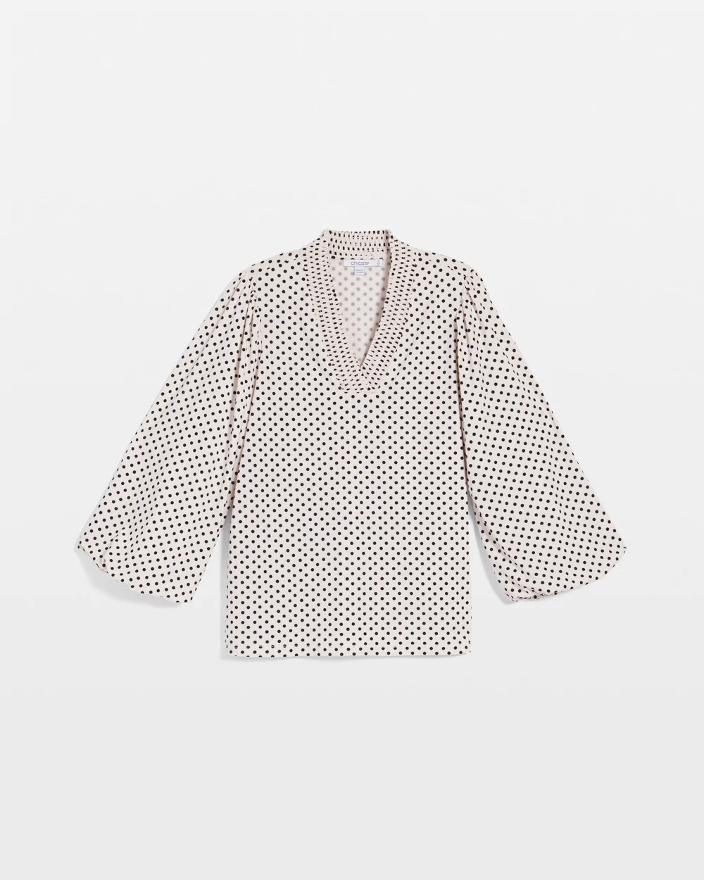 Ultra-flattering smocked sleeves and intricately crafted neckline, complete with romantic, relaxed sleeves help define thisBubble-Sleeve Smocked Top. An easy wear jersey-knit body and lined sleeves for structure make this top a versatile outfit maker. Pair with jeans or for a more elevated look our Brigitte, Emme, or Juliet pants.