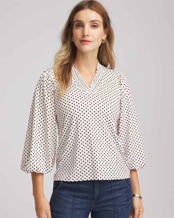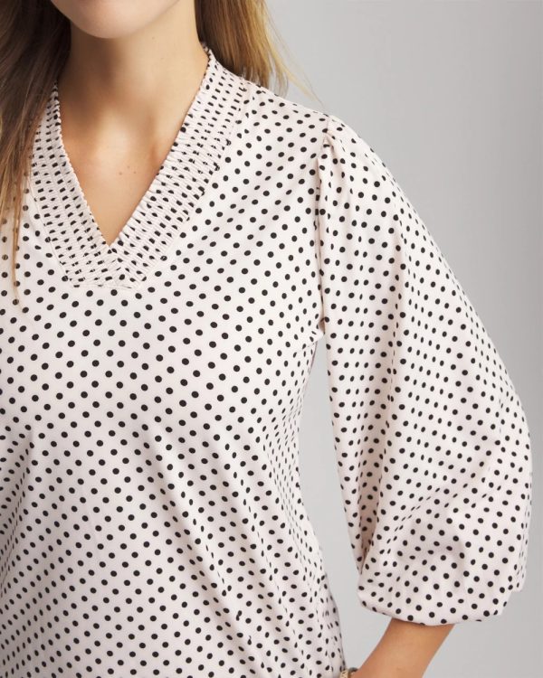 Ultra-flattering smocked sleeves and intricately crafted neckline, complete with romantic, relaxed sleeves help define thisBubble-Sleeve Smocked Top. An easy wear jersey-knit body and lined sleeves for structure make this top a versatile outfit maker. Pair with jeans or for a more elevated look our Brigitte, Emme, or Juliet pants.