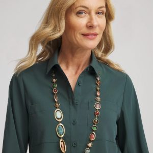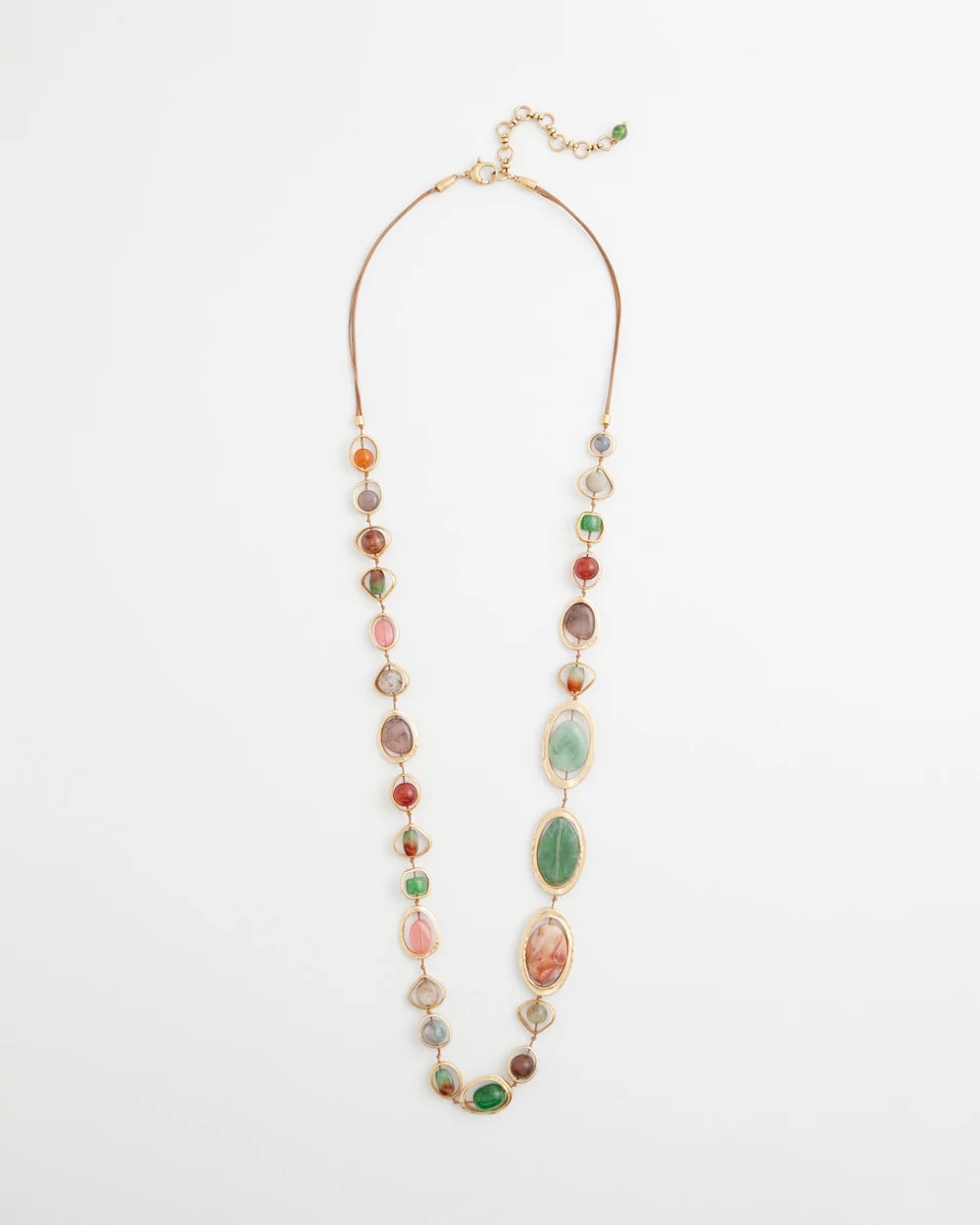 Nature’s beauty radiates from our Chico’s Originals Long Multi-Stone Necklace—imbued with genuine agate and quartz crystal stone plus glass, resin, and brass.. This feel-good design gives your mind, body, soul and style an instant lift. Pair with other layering necklaces from Chico’s Regional Gems Collection or wear on its own.