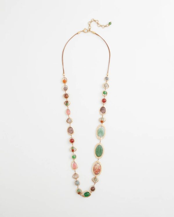 Nature’s beauty radiates from our Chico’s Originals Long Multi-Stone Necklace—imbued with genuine agate and quartz crystal stone plus glass, resin, and brass.. This feel-good design gives your mind, body, soul and style an instant lift. Pair with other layering necklaces from Chico’s Regional Gems Collection or wear on its own.