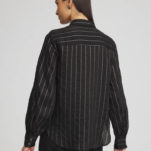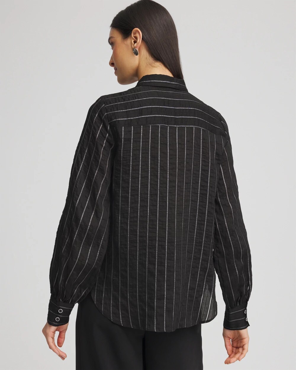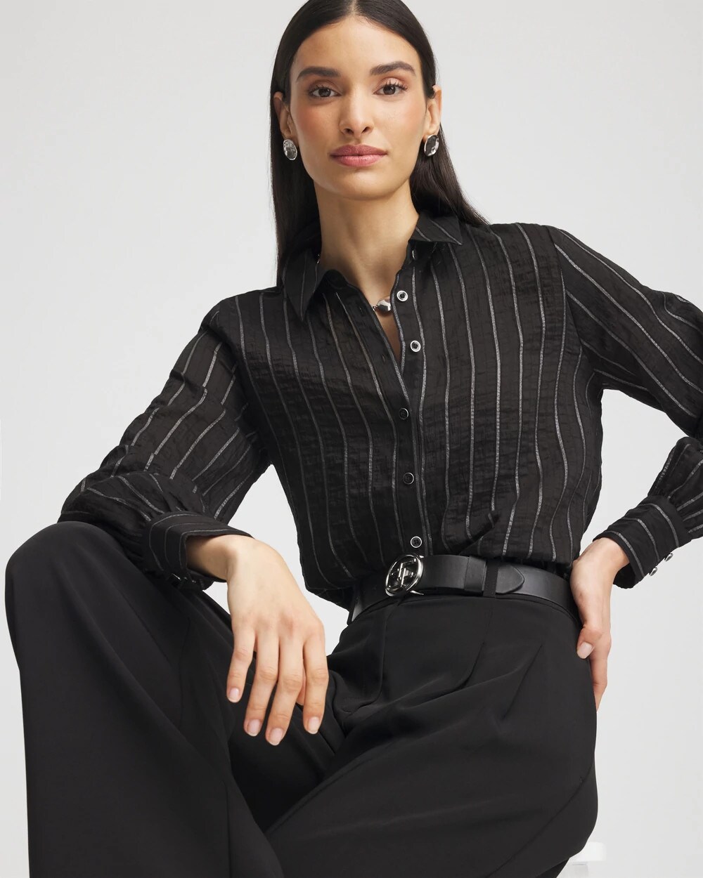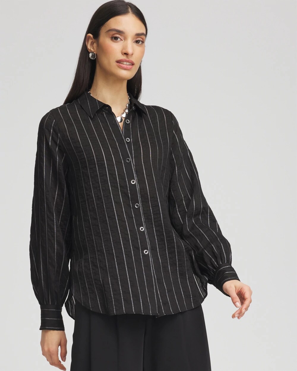 Upgrade your go-to classics with Chico’s new Classic Soft Button-front Blouse. Featuring a subtle shimmer, collared neckline, and long sleeves button detailing.