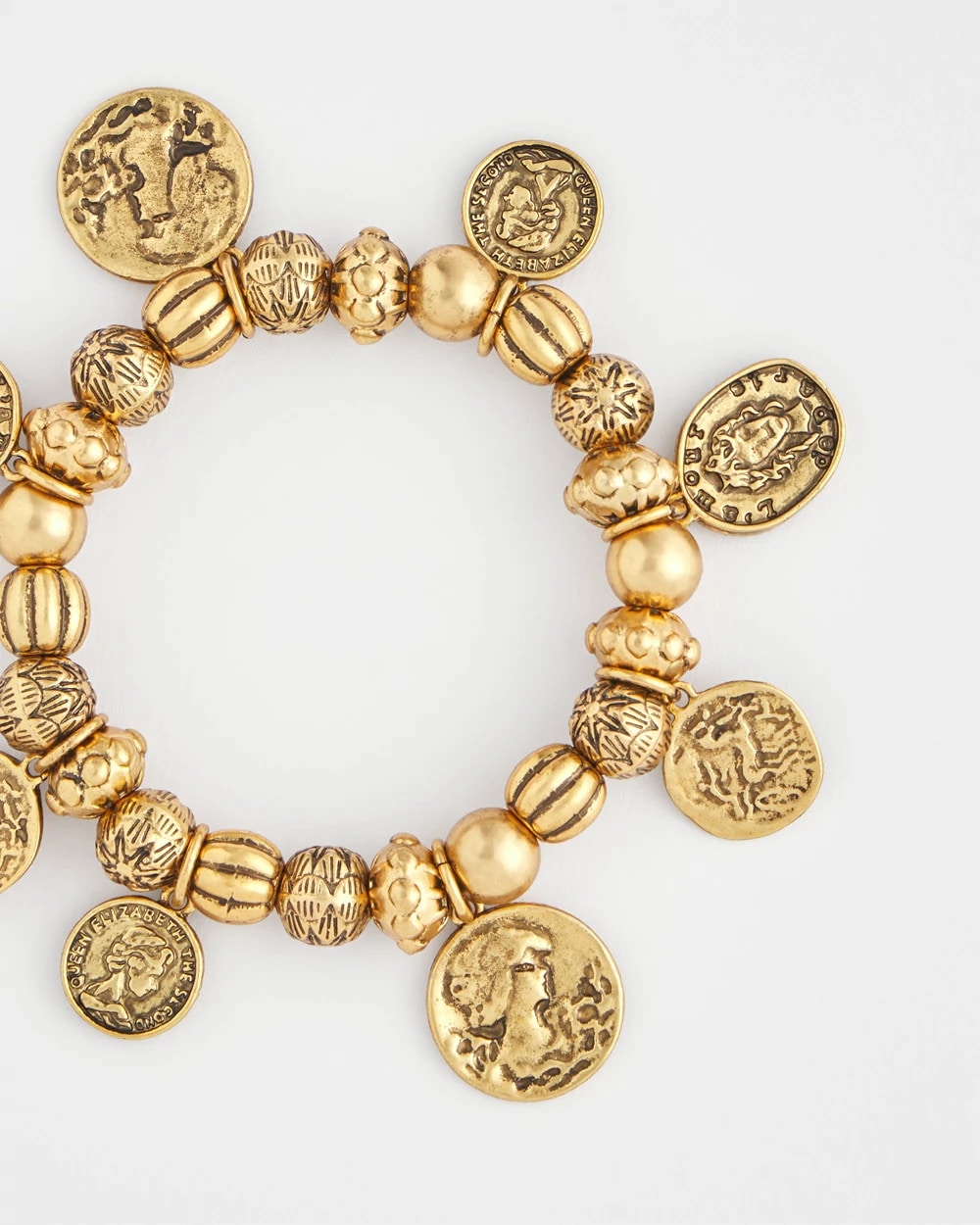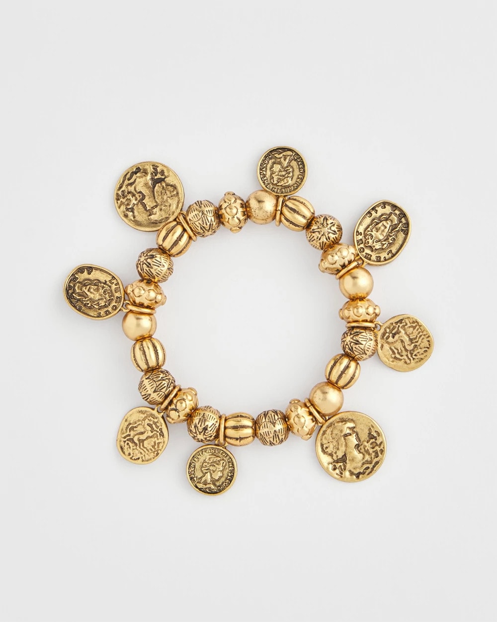 Add this Collector’s Stack, Coin Charm Stretch Bracelet to your must-have list for the season. Easy to wear glamour, just slip-on and go.