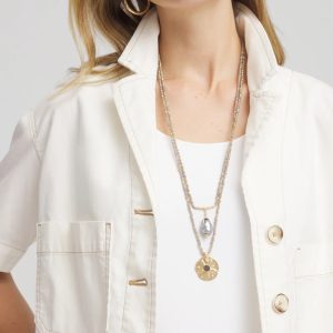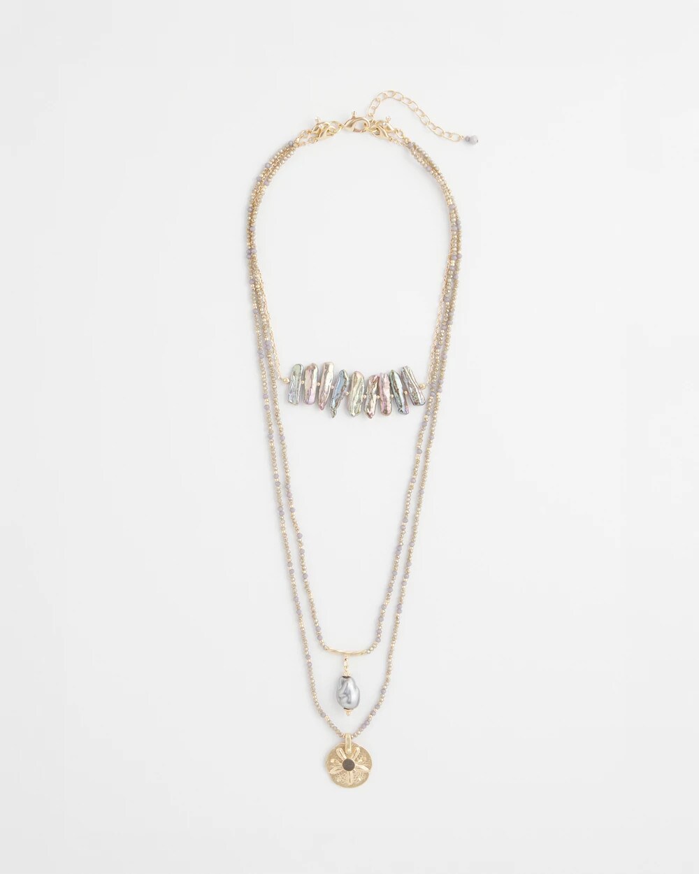 - Convertible 3-layer necklace.