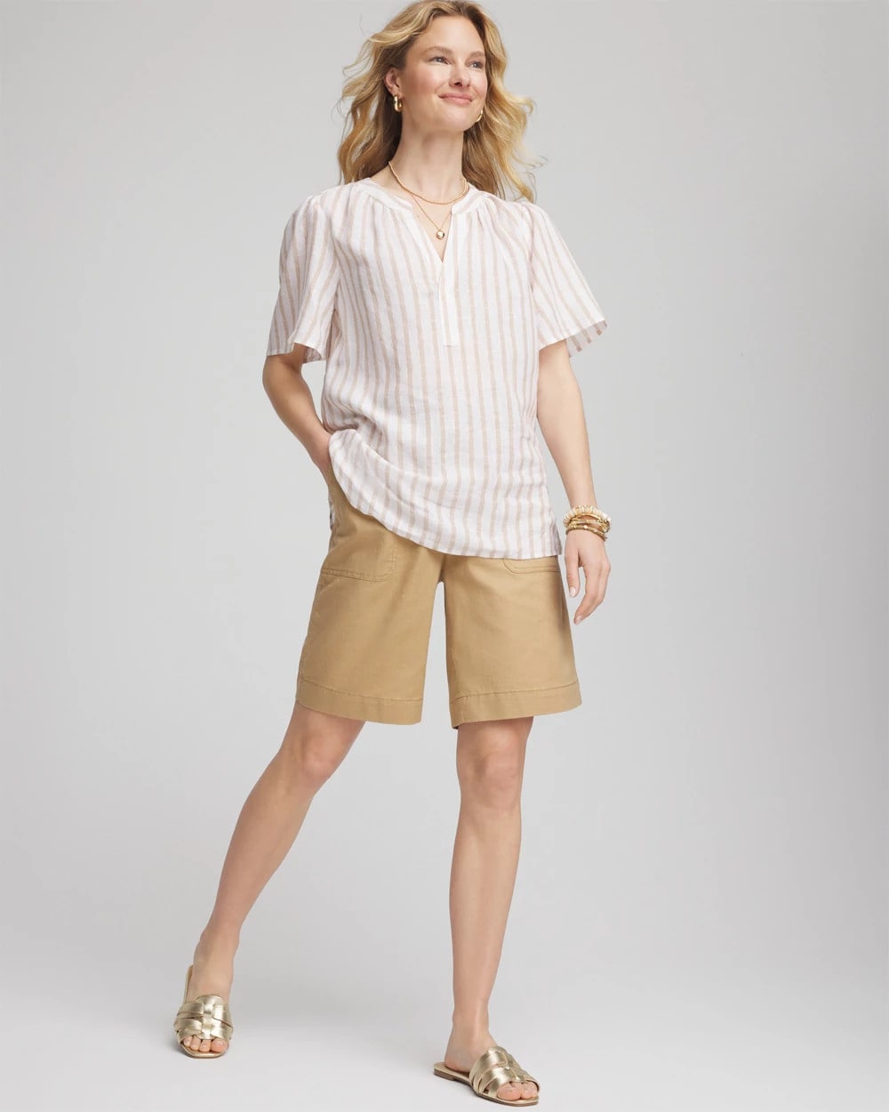 Cotton-Linen Pull-On Utility Shorts