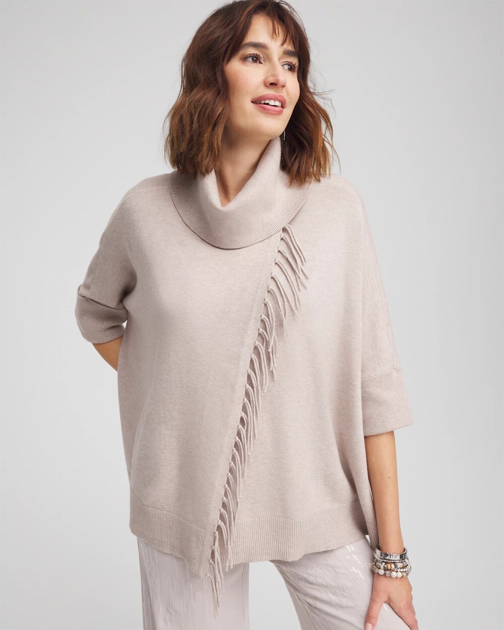 - Classic fit, cowl neck 3/4 sleeve poncho.