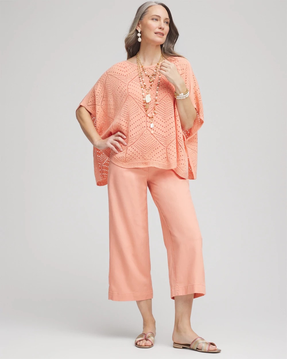 You will love this new stylish layer, Chico’s Crochet Boatneck Poncho. Soft and flattering with a quintessential spring look and feel. Don’t leave home without it. Pair with a microfiber tank or other base layer.