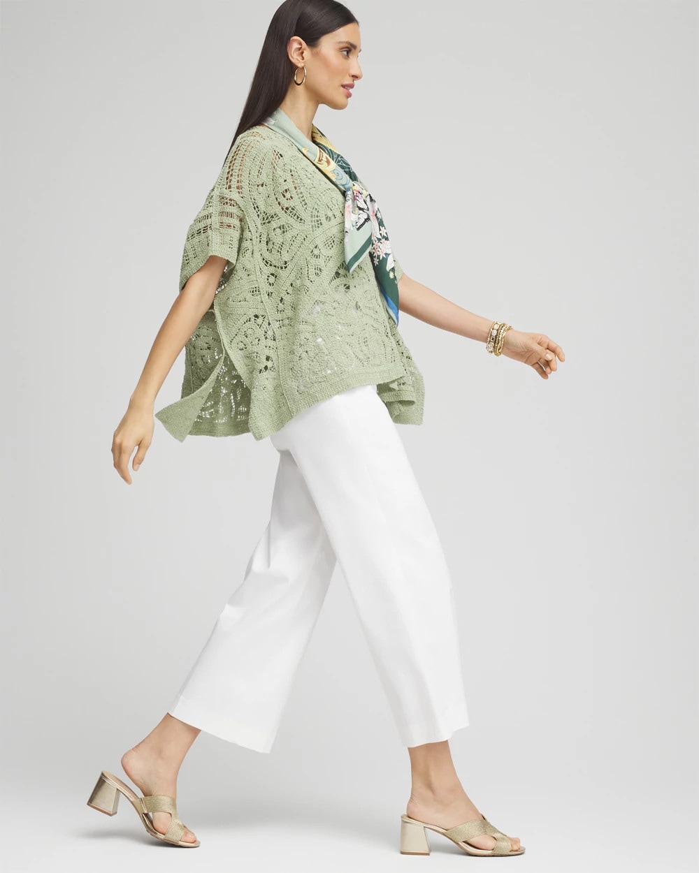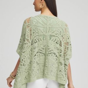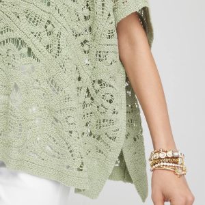 Wear this new luxurious Crochet Lace Poncho on its own or layered for an elegant look. This crocheted topper has a boat neckline to give the silhouette more femininity.