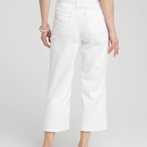 - Relaxed fit; wide leg, high waist, front & back pockets, fly and button closure, crop length.