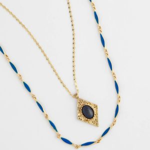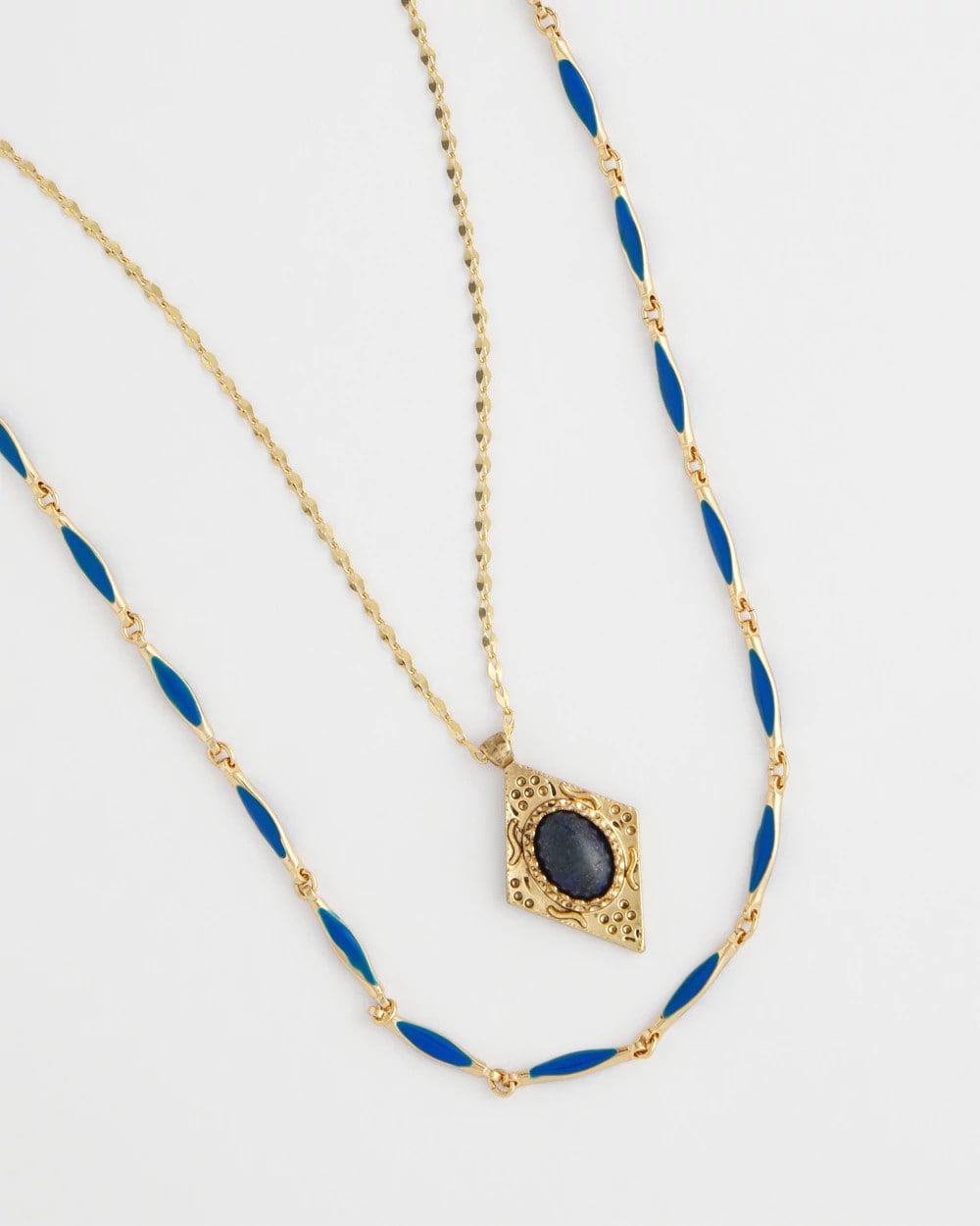The perfect necklace to instantly elevate your style—this striking Double-Strand Sodalite Stone Pendant Necklace. Convertible necklace that can be worn two ways. Part of our Collector’s Stack Collection.