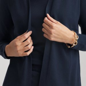 - Classic-fit long-sleeve open-front cardigan.