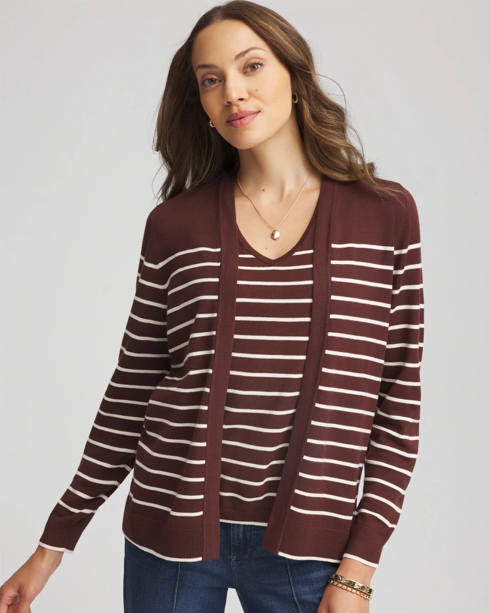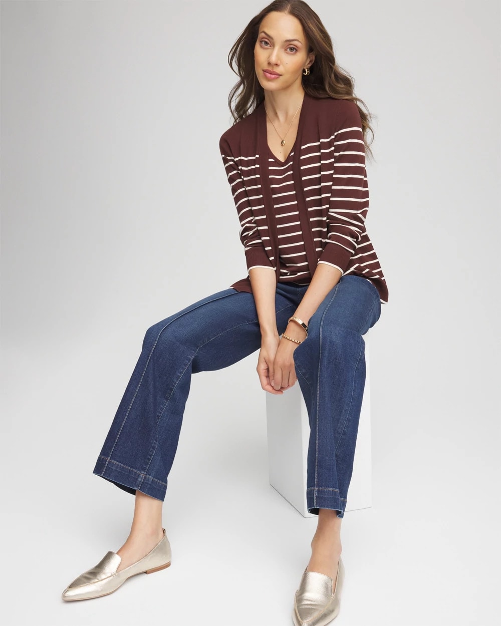 Wear our new Ella Striped Long-Sleeve Cardigan on its own or with the matching tank. Made from super-soft and cozy spun rayon fabric, this casual cardigan with a striped print meets all your needs for everyday elevated styling. Paired with our Brigitte pants or Girlfriend jeans, this debut cardi will soon become a favorite.