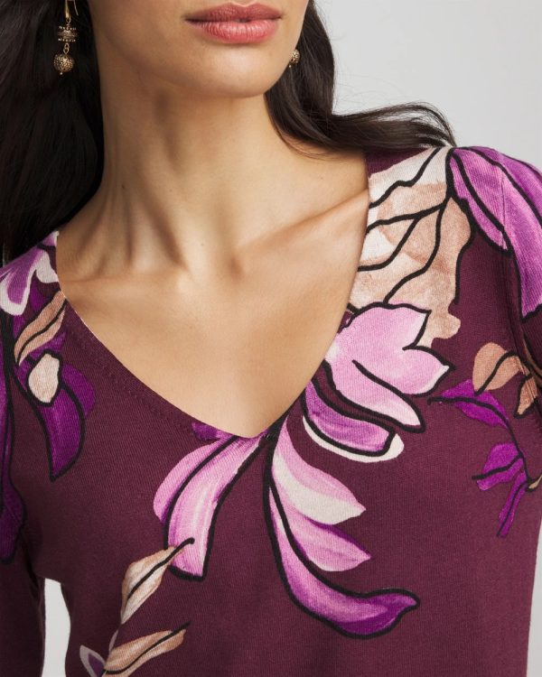 The Ella V-Neck Artisanal Pullover Sweater, in a rich Chianti, showcasing an artistic print, placed in a way that flatters your shape while merging art and fashion. The cuffs have ribbing and non-functional button detailing for added depth and texture. Paired with our Brigitte™, Emme pants or jeans, this sweater is sure to be one of your all-time favorites.