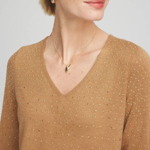 Ella V-Neck Embellished Pullover Sweater
