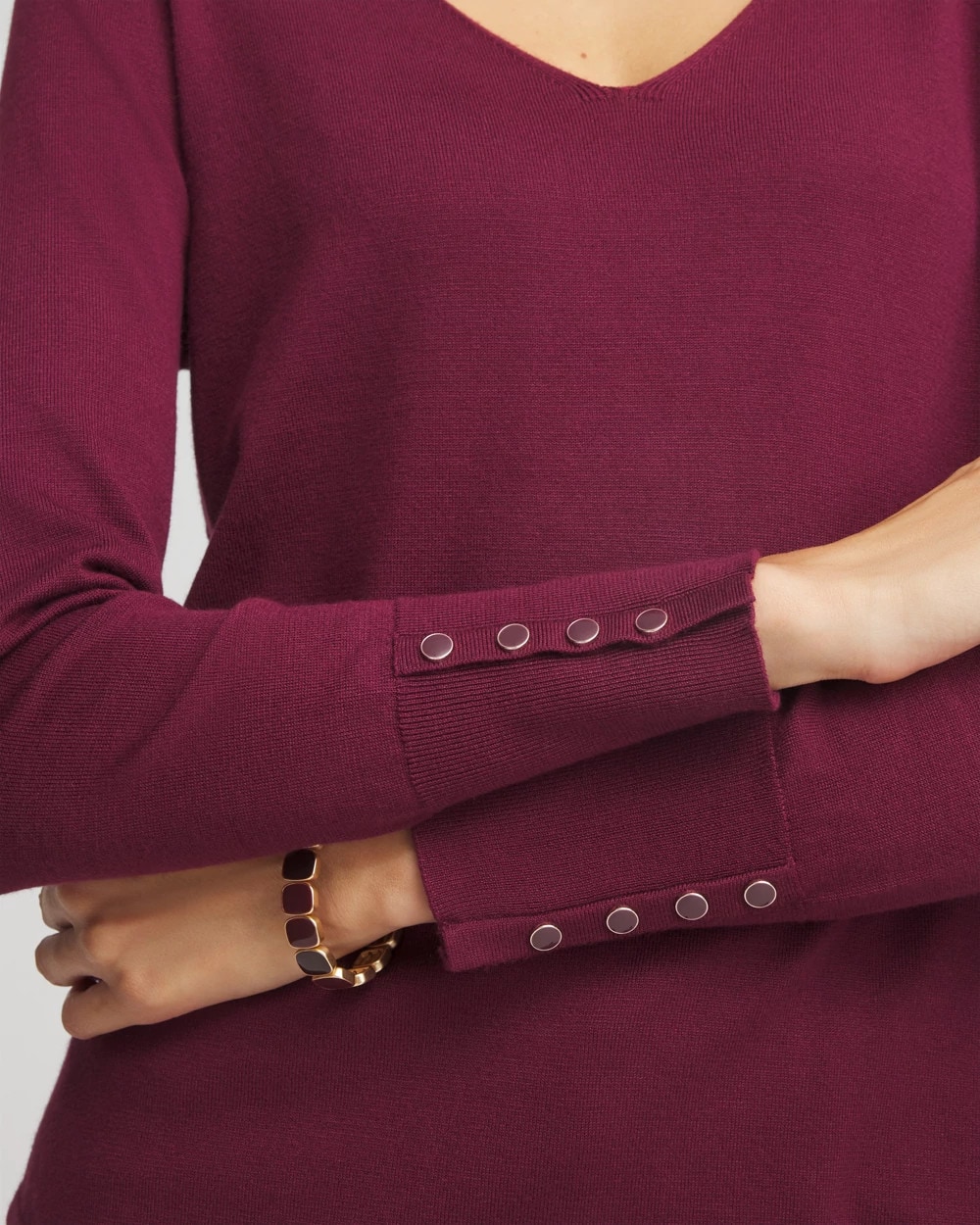 The Ella V-Neck Pullover Sweater offers a simple way to add style to your everyday elevated wardrobe. The cuffs have ribbing and non-functional button detailing for added fashion sense. Paired with our Brigitte™, Emme pants or jeans, this sweater is sure to be one of your seasonal favorites.