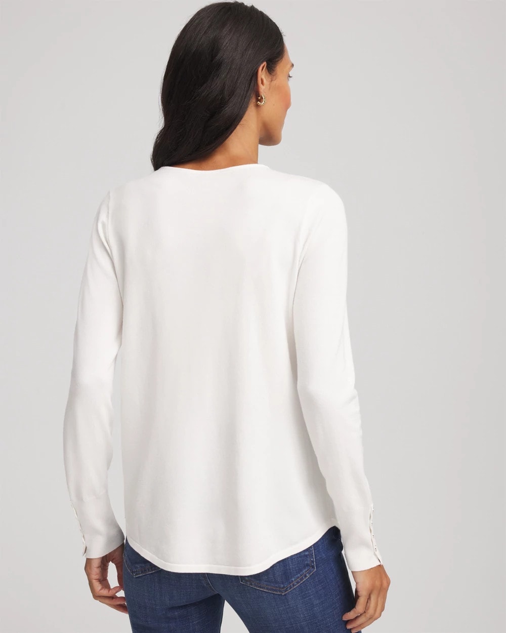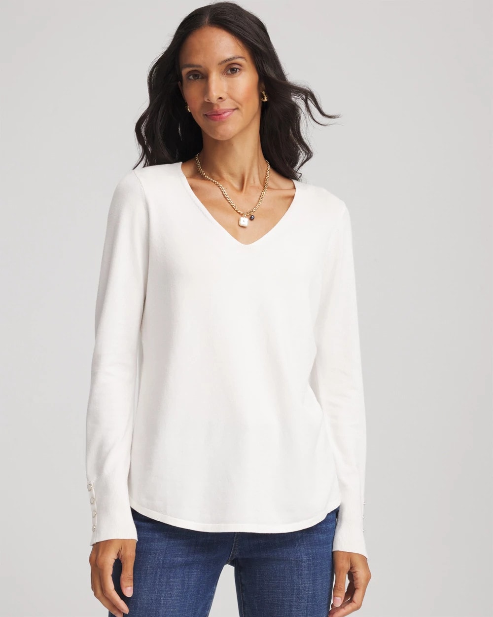The Ella V-Neck Pullover Sweater offers a simple way to add style to your everyday elevated wardrobe. The cuffs have ribbing and non-functional button detailing for added fashion sense. Paired with our Brigitte™, Emme pants or jeans, this sweater is sure to be one of your seasonal favorites.