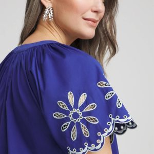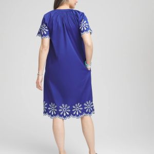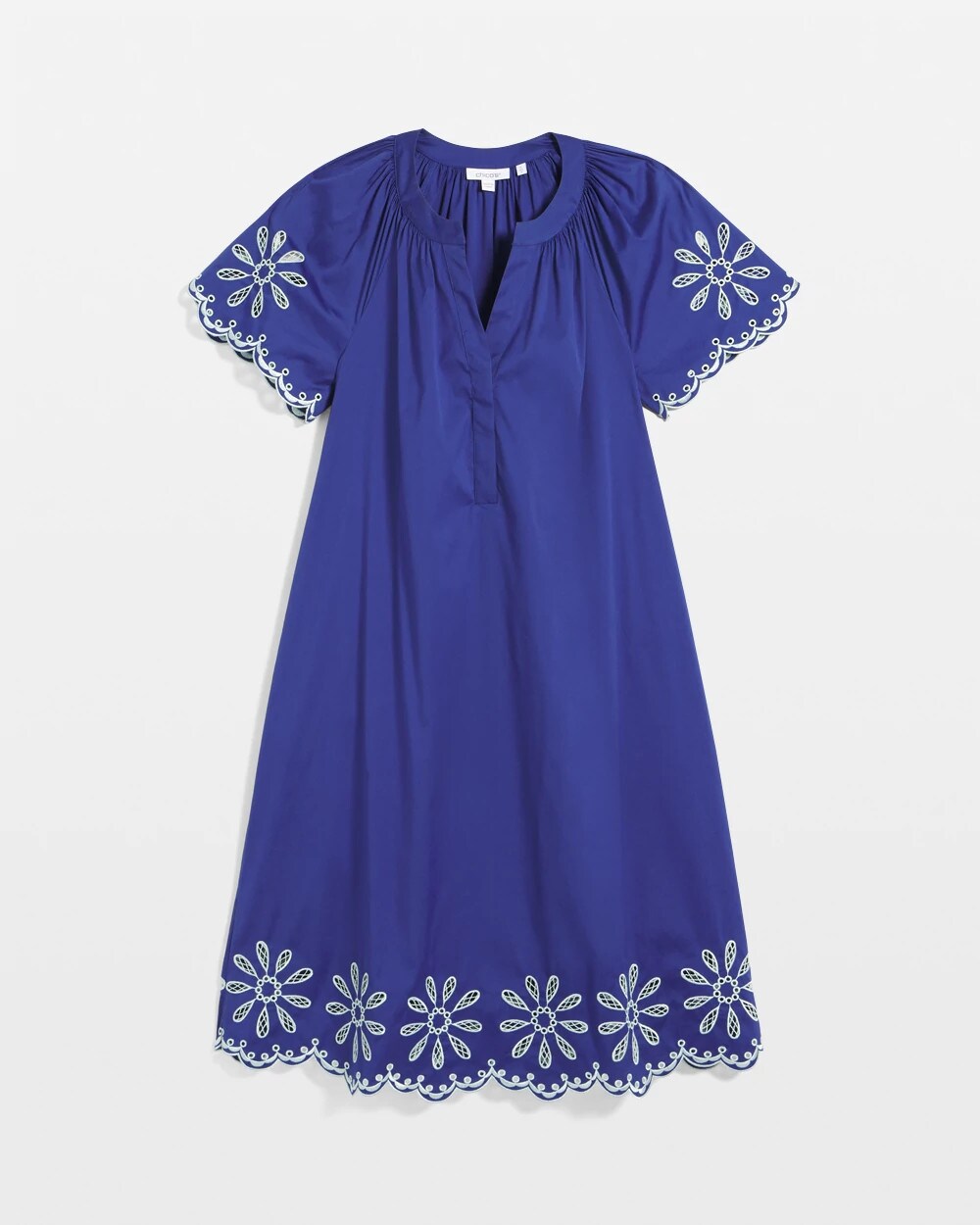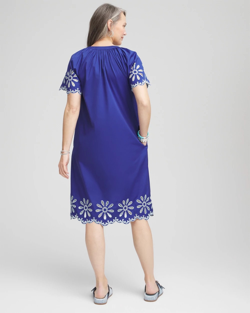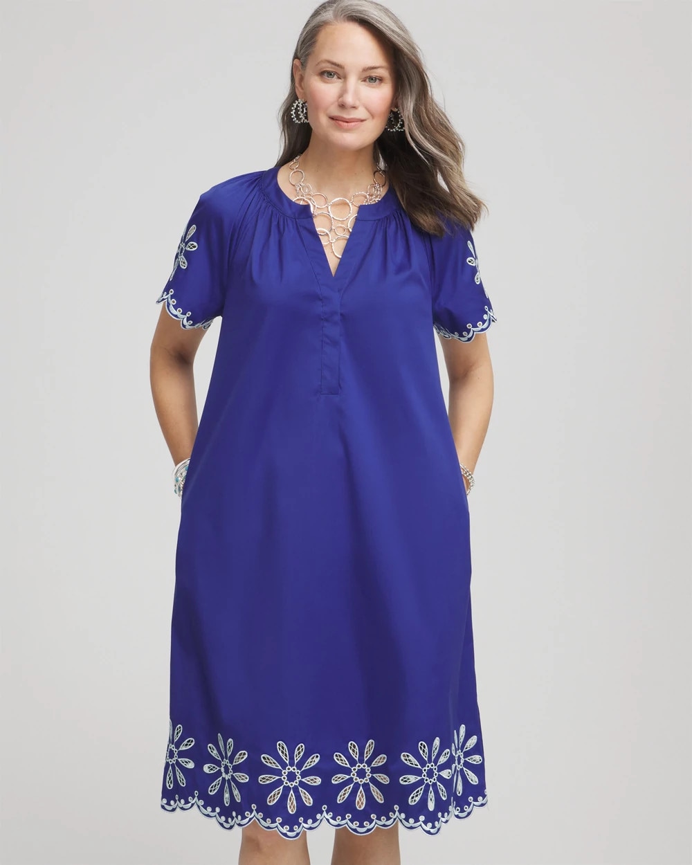 Your closet will thank you for adding Chico’s new Embroidered Poplin Popover Dress. Showcasing a stunning new look, v-neckline, intricate embroidery on the hem and sleeves. Pair with Chico’s matching jewelry and accessories.