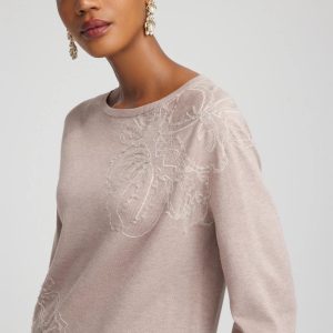 Floral embroidery and a flattering raglan sleeve help define thisEmbroidered Pull-Over Boatneck Sweater. Pair with Juliet, Brigitte™ or Emme pants.
