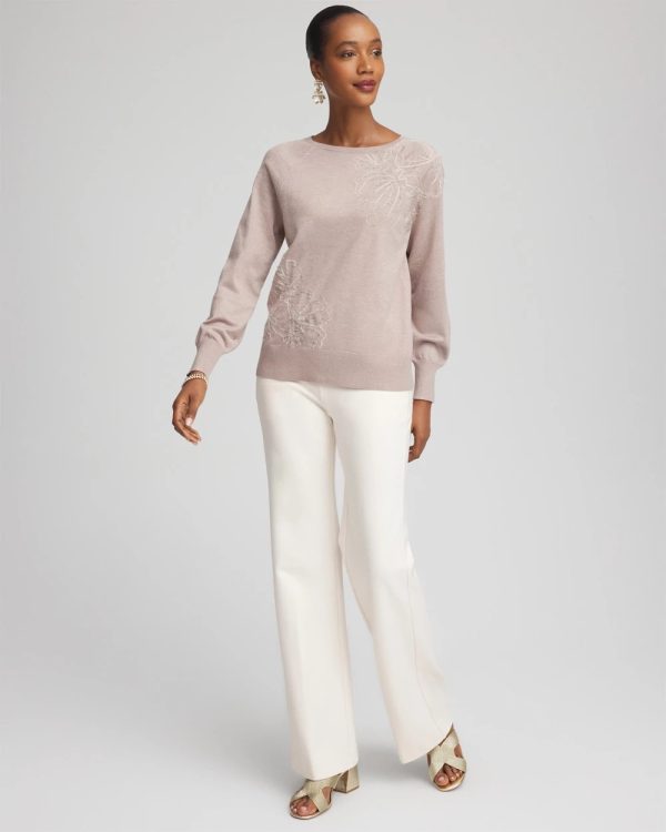 Floral embroidery and a flattering raglan sleeve help define thisEmbroidered Pull-Over Boatneck Sweater. Pair with Juliet, Brigitte™ or Emme pants.
