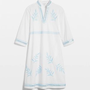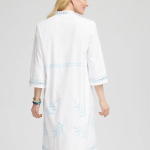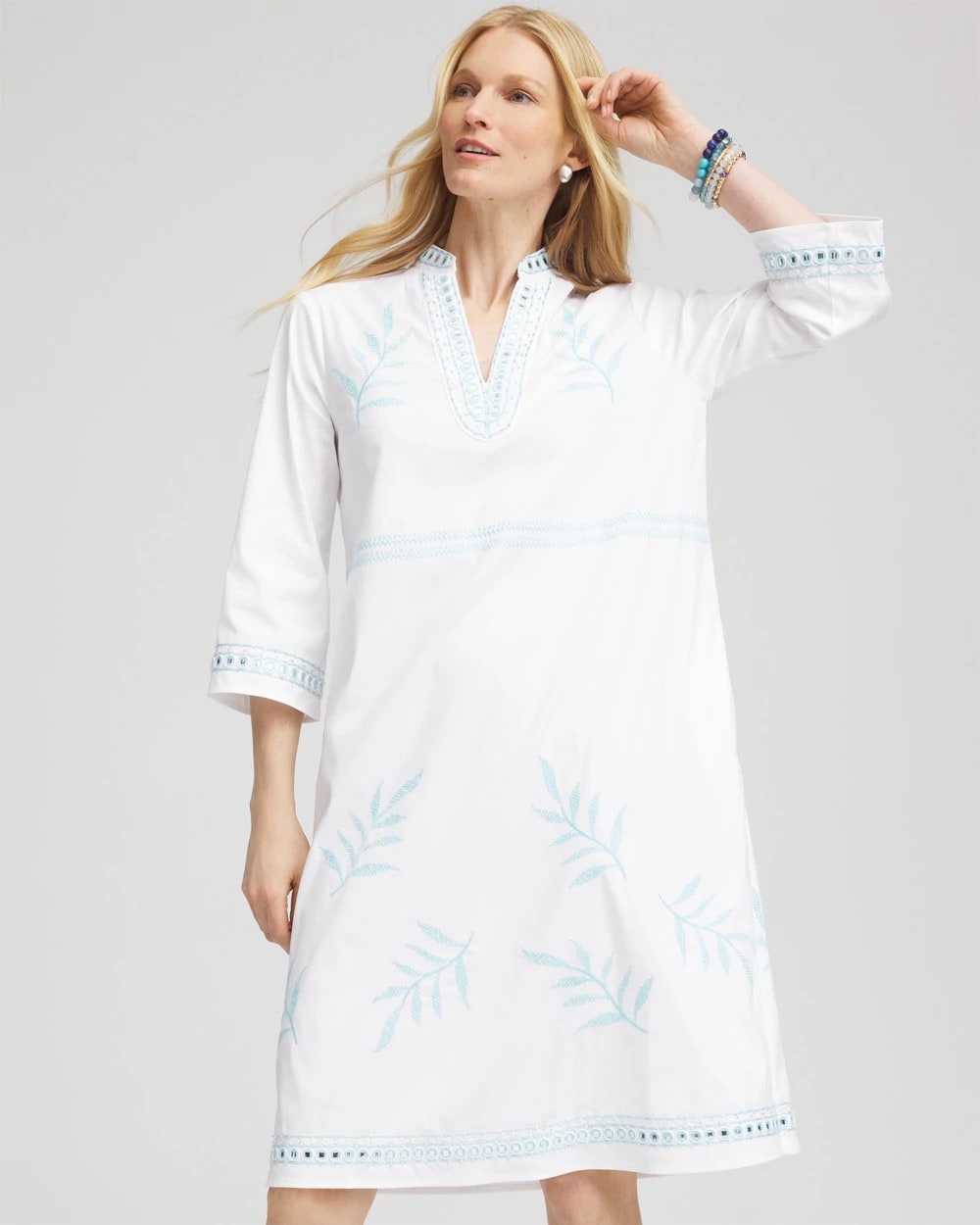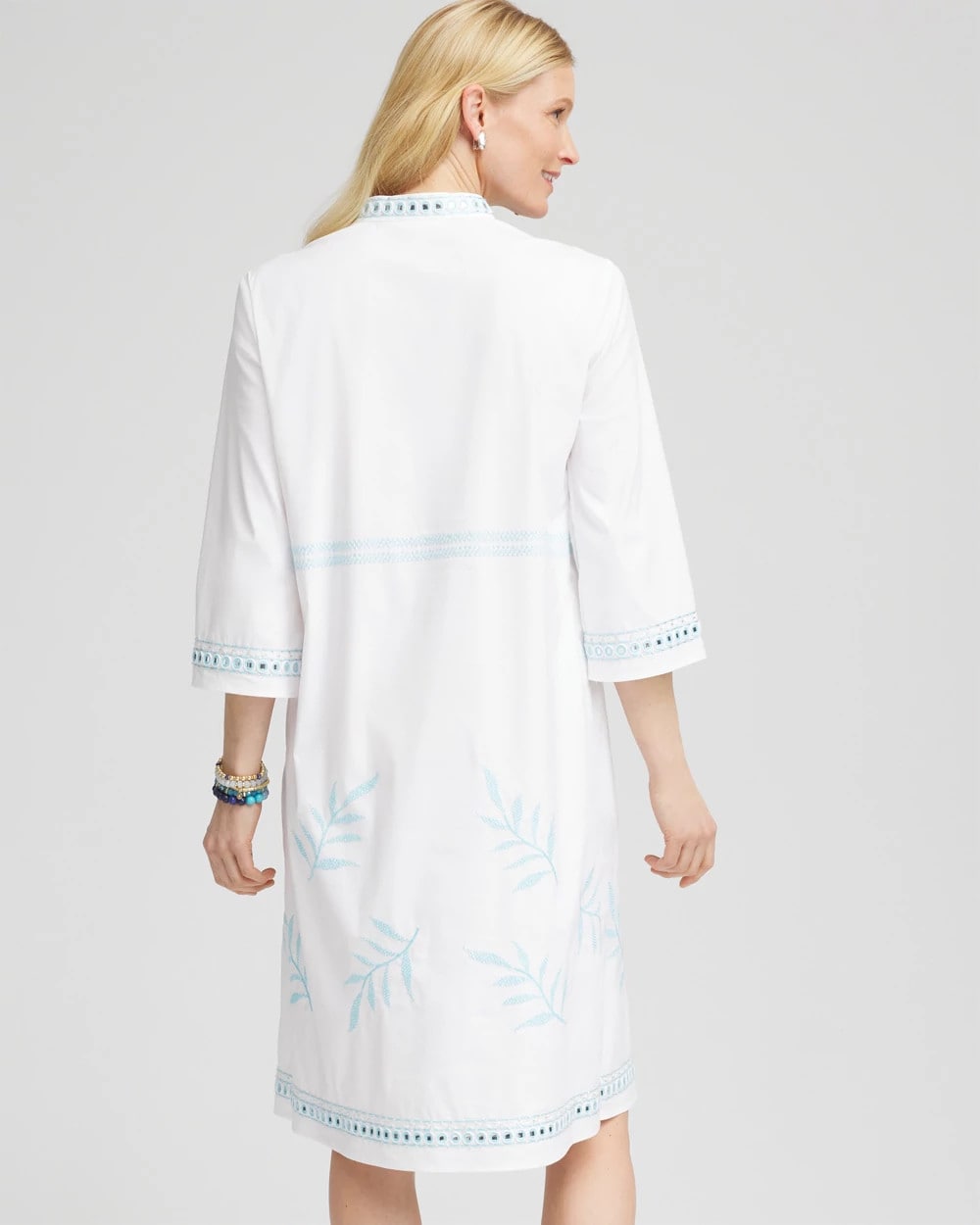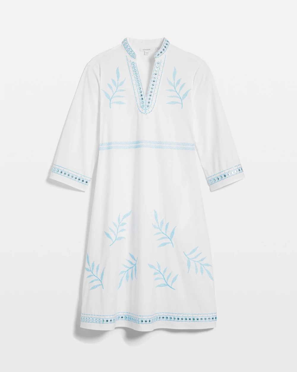 Your closet will thank you for adding Chico’s new Embroidered Stand Collar Kaftan Dress. Showcasing an intricate, placed embroidered design, also on hems, neckline, and cuffs. You will love the way you look and feel in this new look. Pair with Chico’s matching jewelry and accessories.