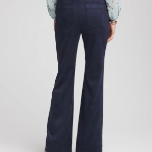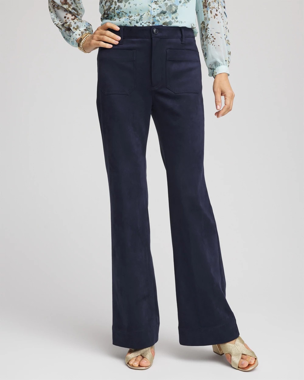 Expertly tailored—signature ’70s inspired straight, trouser-style bootcut ankle pants with a soft, delicate vegan suede motif for modern appeal. Showcasing thoughtful design elements including front and back patch pockets.