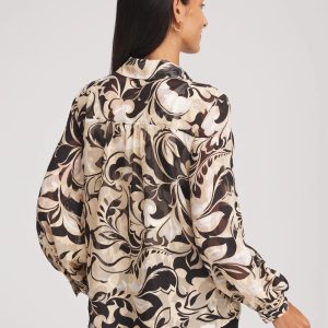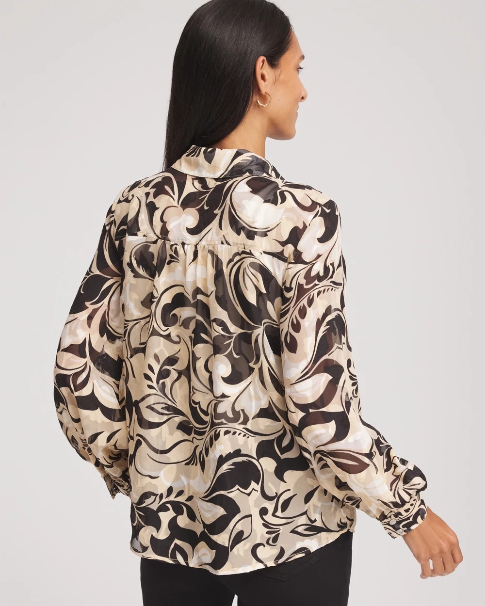 Floral Burnout Blouson-Sleeve Blouse