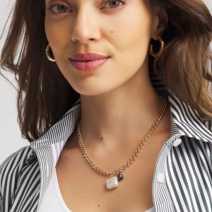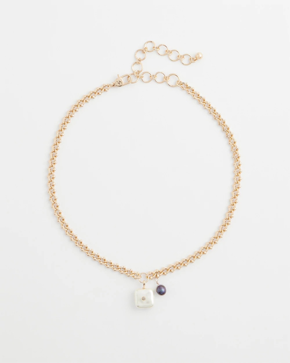 A stunning square freshwater pearl with a centered cubic zirconia helps define thisFreshwater Pearl Pendant Necklace. Wear on its own or pair with other gold tones from Chico’s Regional Gems Layering pieces.