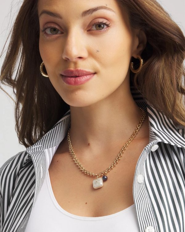 A stunning square freshwater pearl with a centered cubic zirconia helps define thisFreshwater Pearl Pendant Necklace. Wear on its own or pair with other gold tones from Chico’s Regional Gems Layering pieces.