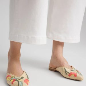 The new Gabby Raffia Mule are made with high quality and sleek style, while keeping comfort in mind. Showcasing a Raffia upper with floral embroidered design. Easy slip on style. Chico’s Dual pod memory foam padded sock design for all day comfort.