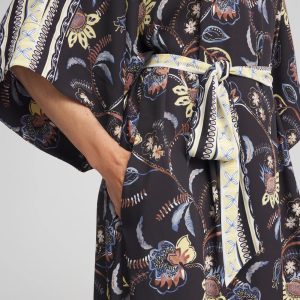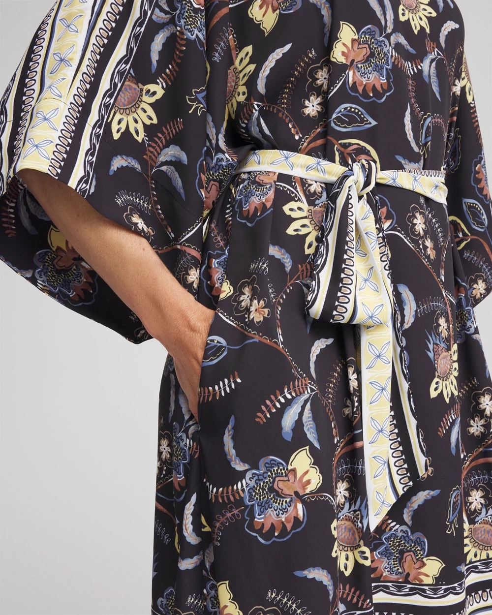 Versatile, easy, and steeped in history, the kaftan dress is a beloved bestseller. Wear by the pool, at the beach or to brunch. This lightweight Georgette Boatneck Kaftan Dress is the perfect vacation dress. Showcasing grow over elbow sleeves, pockets, a boat neckline, and a self-belt.