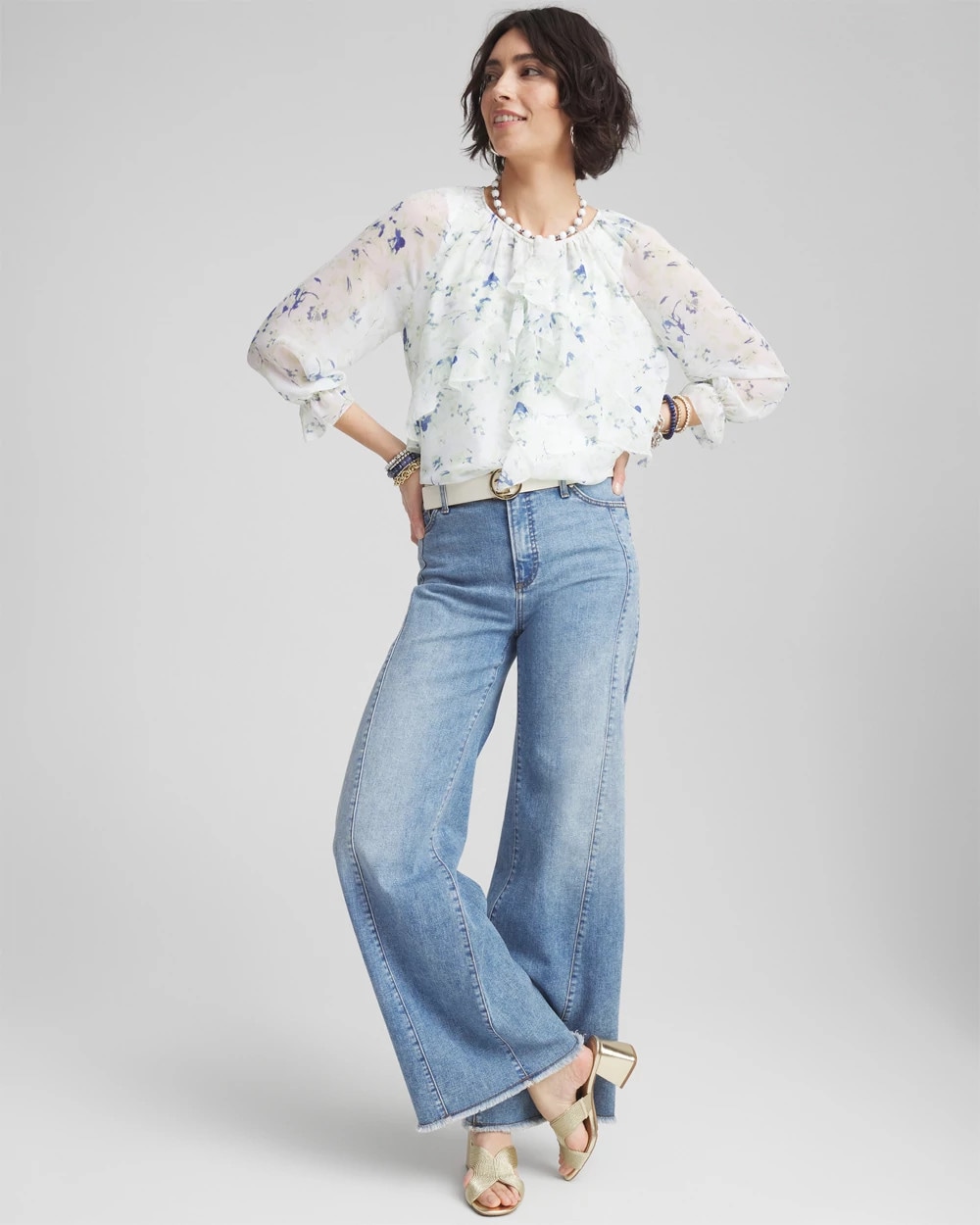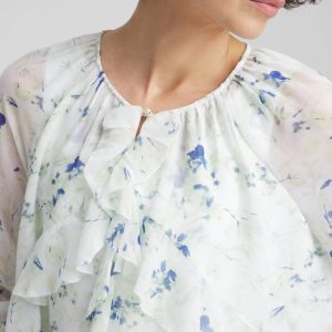 ‘Tis the season to turn heads. Wear this dramatic new Georgette Sheer Ruffle Blouse atop a matching Microfiber tank for a striking style this spring. Gorgeous ruffles on the front and cuffs in this must-have blouse of the season.