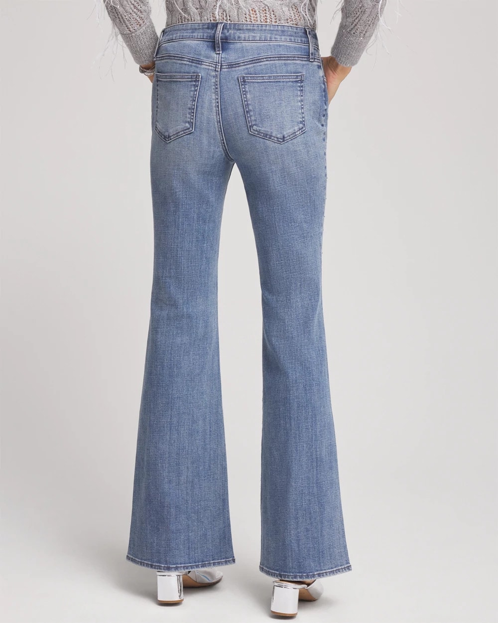 Meet our new embellished Girlfriend Flare Jeans. Featuring a subtle flare to instantly elongate your legs and beautiful all-over rhinestone detailing for a touch of class. Meticulously made in typical Chico’s fashion and with our coveted ultra tummy slimming inner lining. Pairs beautifully with your favorite Chico’s tops. Add this stunning wardrobe staple for the season to your closet.