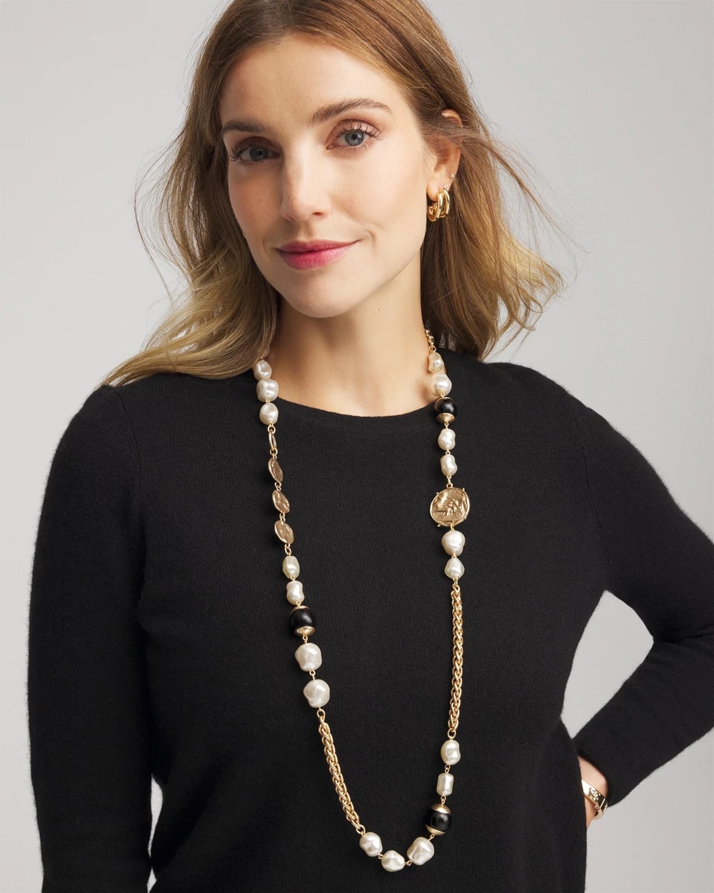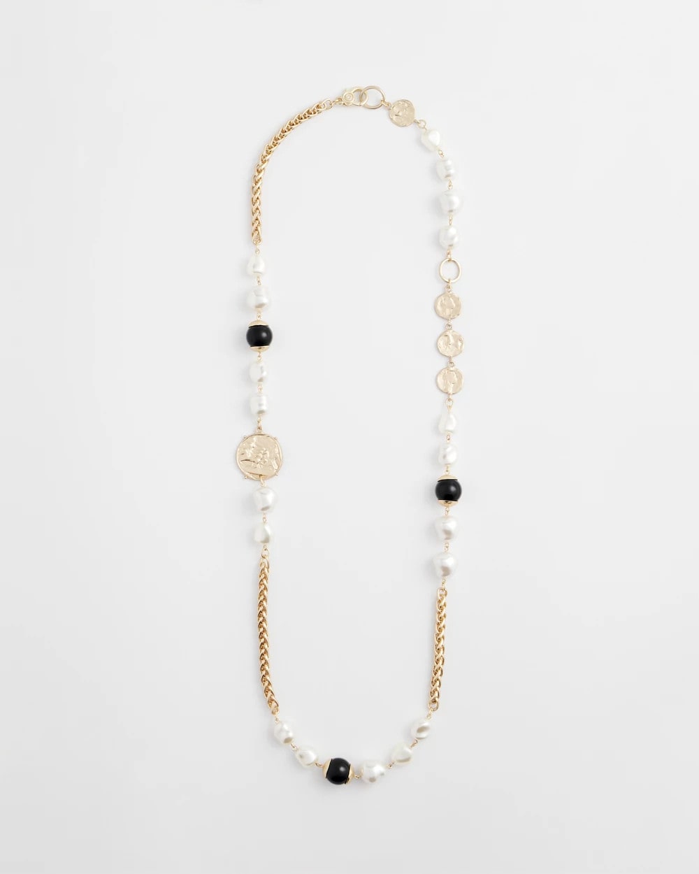 The perfect layering necklace—this Gold Pearl Long Single-Strand Necklace features faux pearls and golden hues. Layer with other pieces from our Dots and Spots Collection or experience simplicity at its best by wearing on its own.