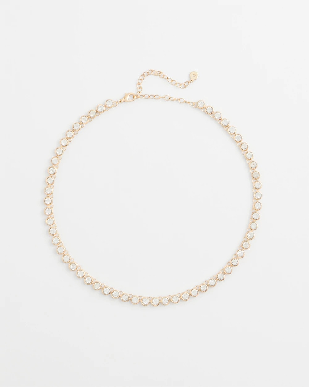 Timeless beauty radiates from our Goldtone Tennis Necklace. Wear with anything—from casual wear to special events. Pair with other silver tones from Chico’s jewelry collection or wear on its own.