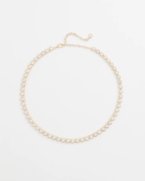 Timeless beauty radiates from our Goldtone Tennis Necklace. Wear with anything—from casual wear to special events. Pair with other silver tones from Chico’s jewelry collection or wear on its own.