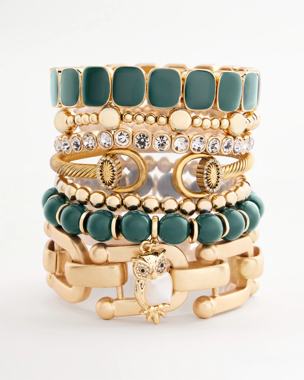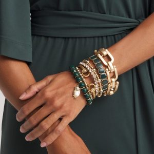 Elevate your style and bracelet stacks with this glamorous Green & Gold Beaded Charm Bracelet. Continually evolving, the Chico’s bracelet bar features one-of-a-kind flattering designs that bring current fashion sense and our designers innate vision to your overall beauty.