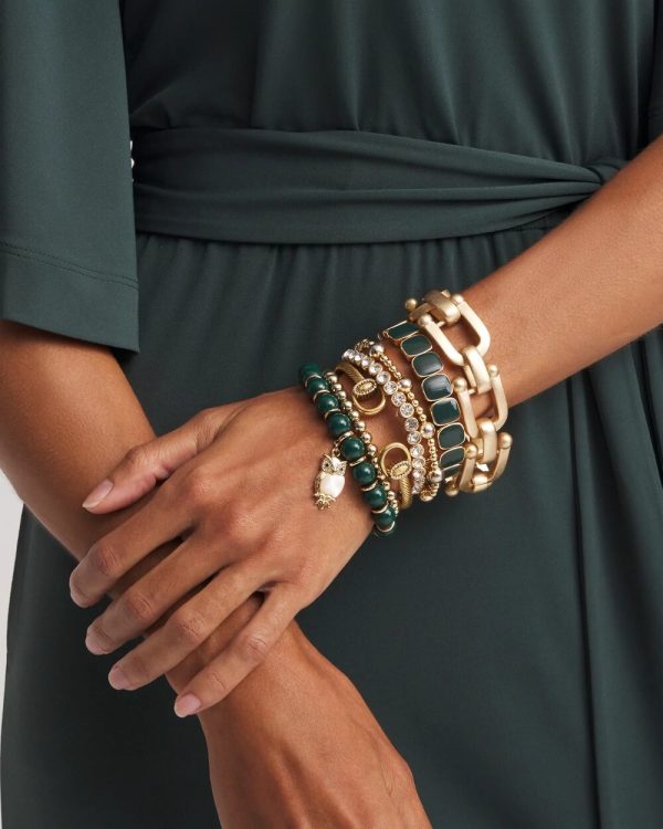 Elevate your style and bracelet stacks with this glamorous Green & Gold Beaded Charm Bracelet. Continually evolving, the Chico’s bracelet bar features one-of-a-kind flattering designs that bring current fashion sense and our designers innate vision to your overall beauty.