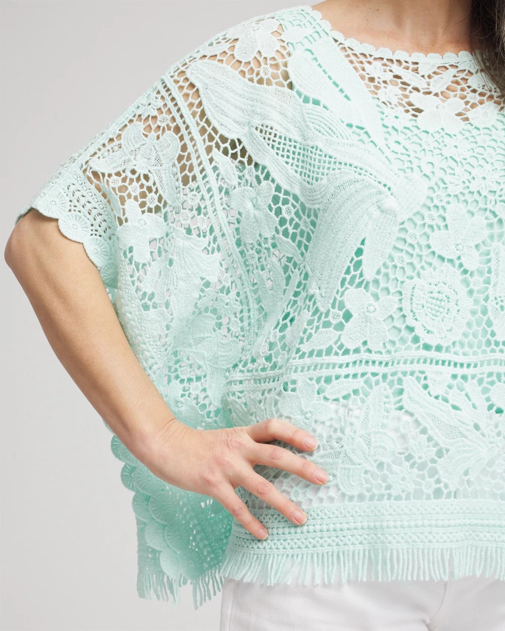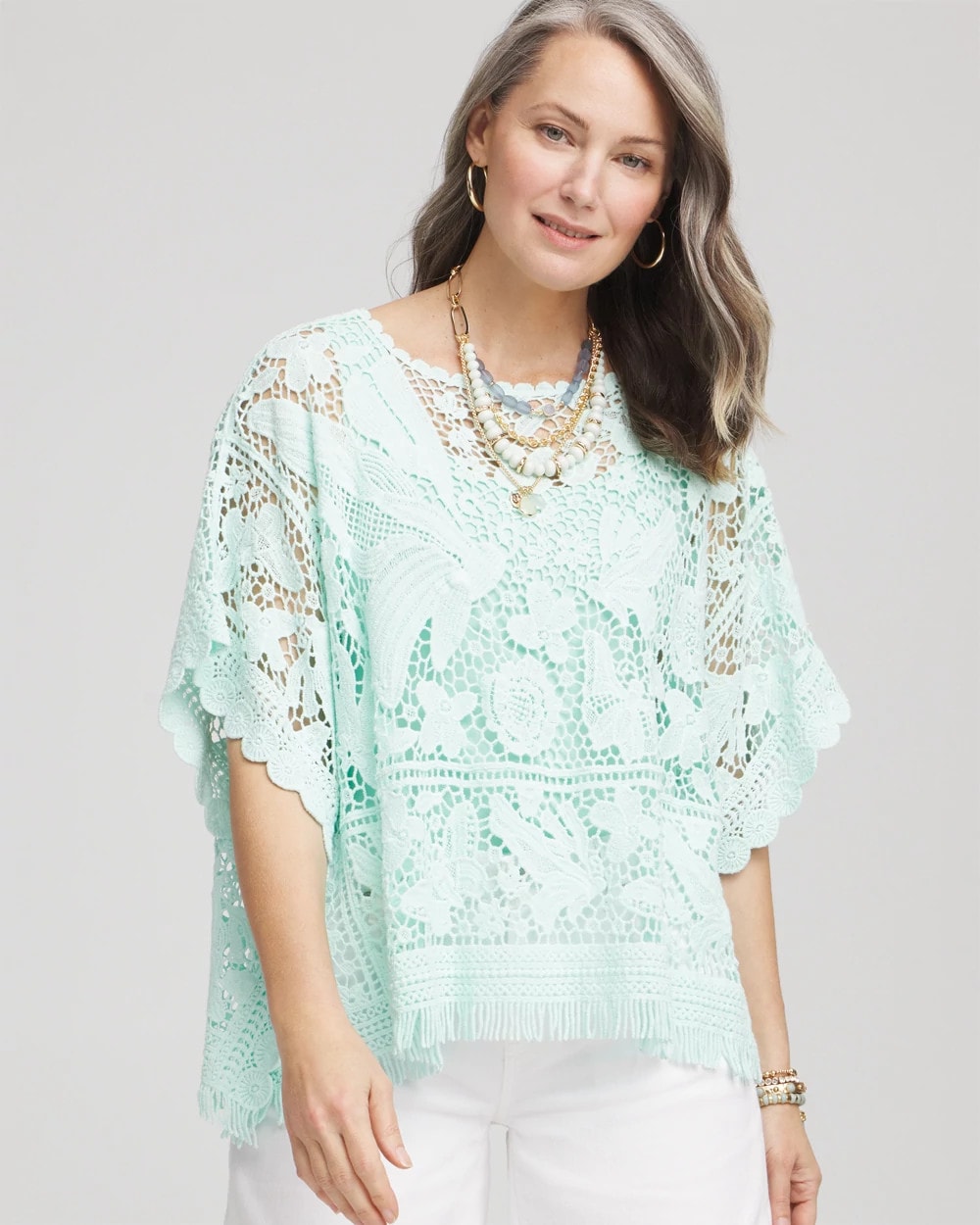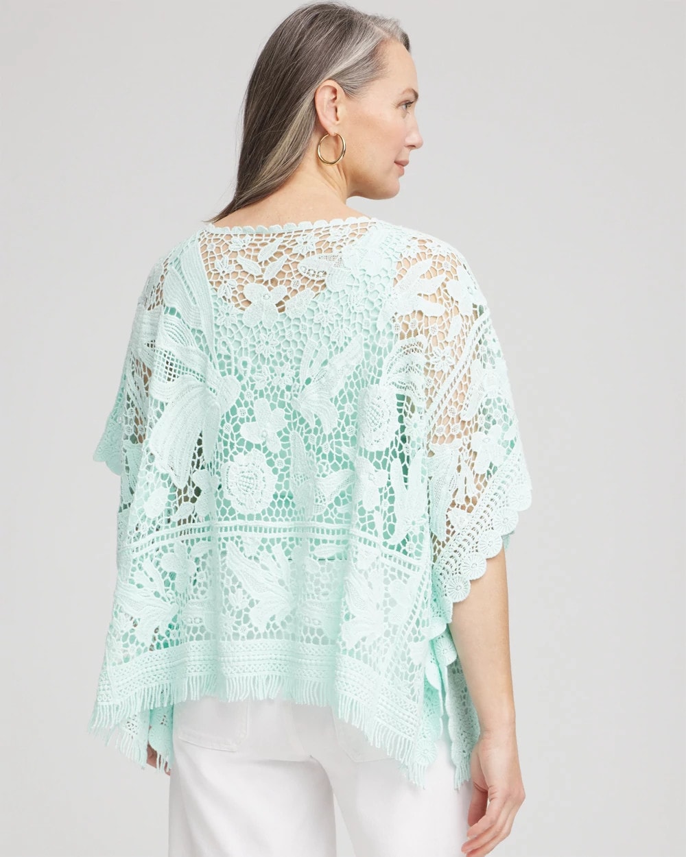 Our Lace Crochet Poncho has easy-breezy style. This design features a delicate lace crochet construction, plus leaf hem trim that adds movement and flair.