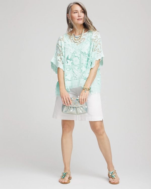 Our Lace Crochet Poncho has easy-breezy style. This design features a delicate lace crochet construction, plus leaf hem trim that adds movement and flair.