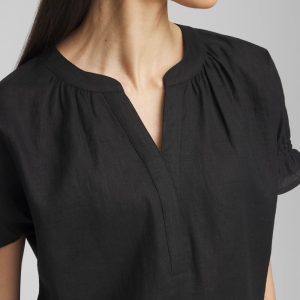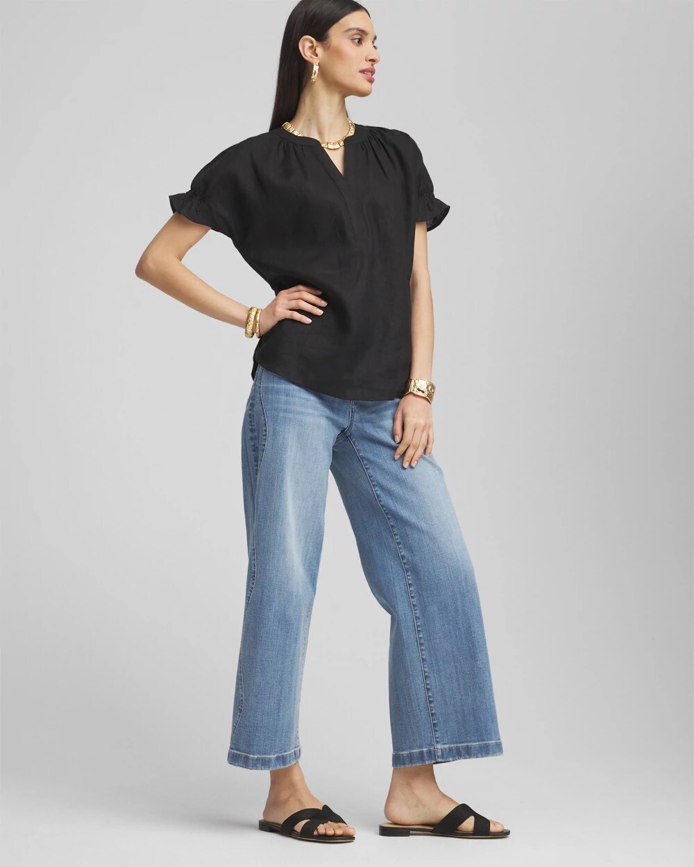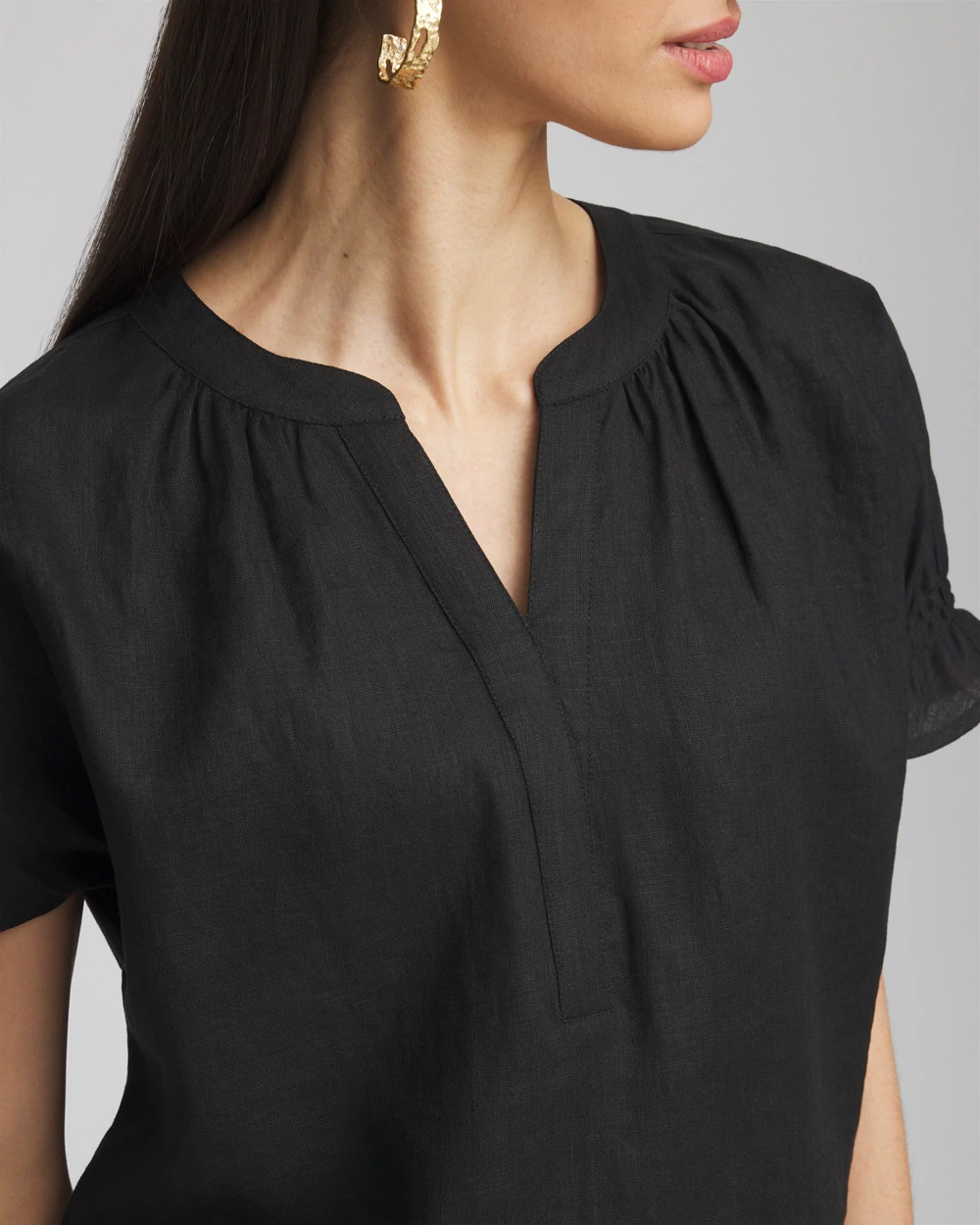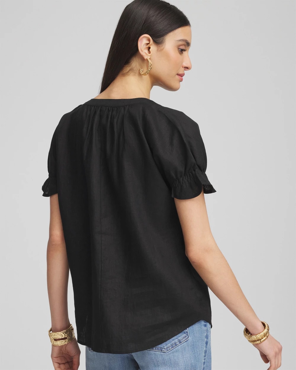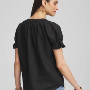 Linen Flutter-Sleeve Popover Top