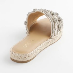 Add these beautiful new Linen Knotted Espadrille Slides to your warm weather wardrobe. Slip on and go, slide styling for ease of wear.Open back design for easy slip on, paired with a rubber sole for slip resistance.