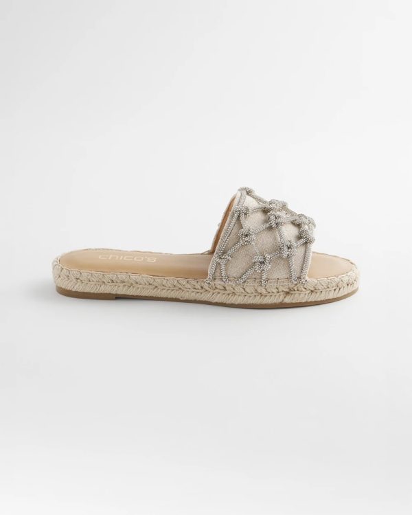 Add these beautiful new Linen Knotted Espadrille Slides to your warm weather wardrobe. Slip on and go, slide styling for ease of wear.Open back design for easy slip on, paired with a rubber sole for slip resistance.