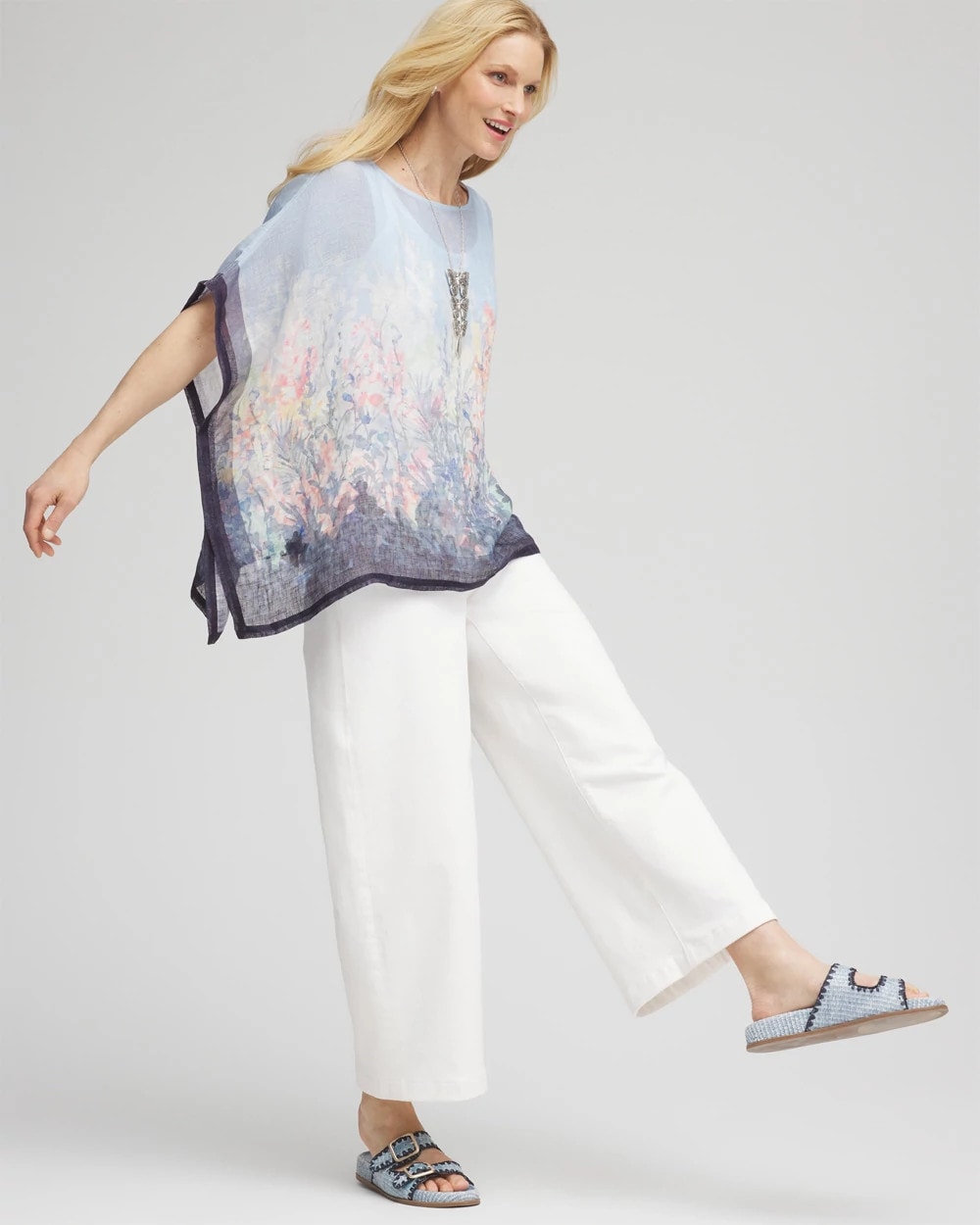 You will love this new stylish layer, Chico’s Linen Ombre Watercolor Boatneck Poncho. Soft and flattering with a an ombre border, quintessential spring look and feel. Don’t leave home without it. Pair with a microfiber tank or other base layer.