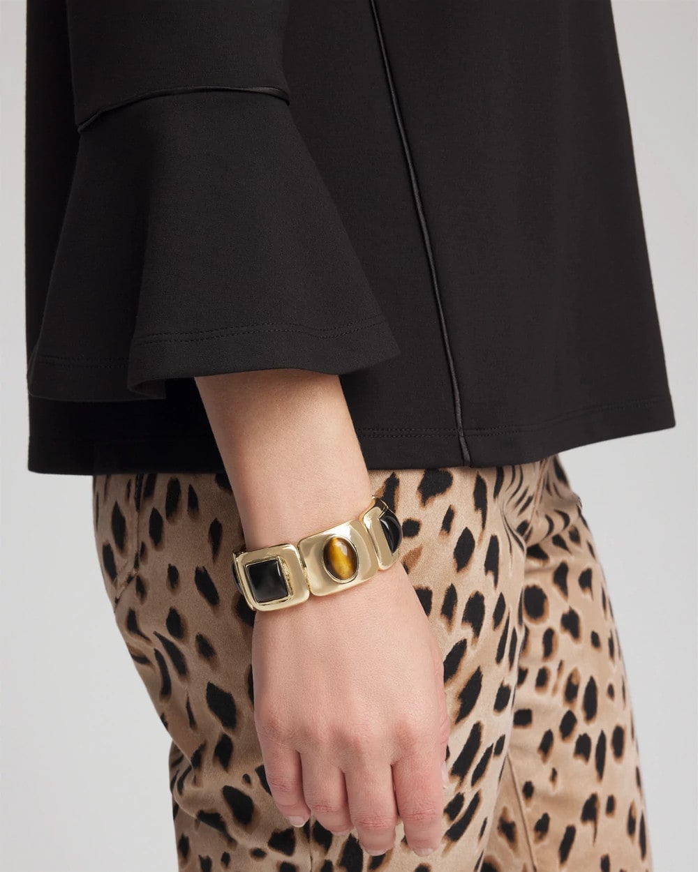 Glistening gold tones and genuine tiger’s eye stone help define this glamorous Neutral Gold Stretch Bracelet. Experience feel-good style with this easy to wear, slip-on bracelet, and pair with pieces from our Animal Instincts Collection.