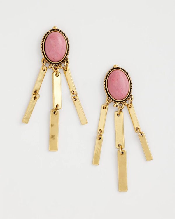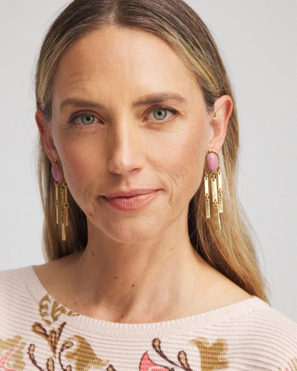 Statement linear drop earrings showcasing striking rhodonite and jasper stones draped alongside rich golden metals. Can be worn to elevate your casual wear or as the finishing touch to your more glamorous styles.Featuring Chico’s proprietary No Droop® technology to create statement styles without the weight on your earlobes.Pair with matching linear statement necklace—for the full effect—and other pieces from Chico’s Regional Gems Pink Collection.